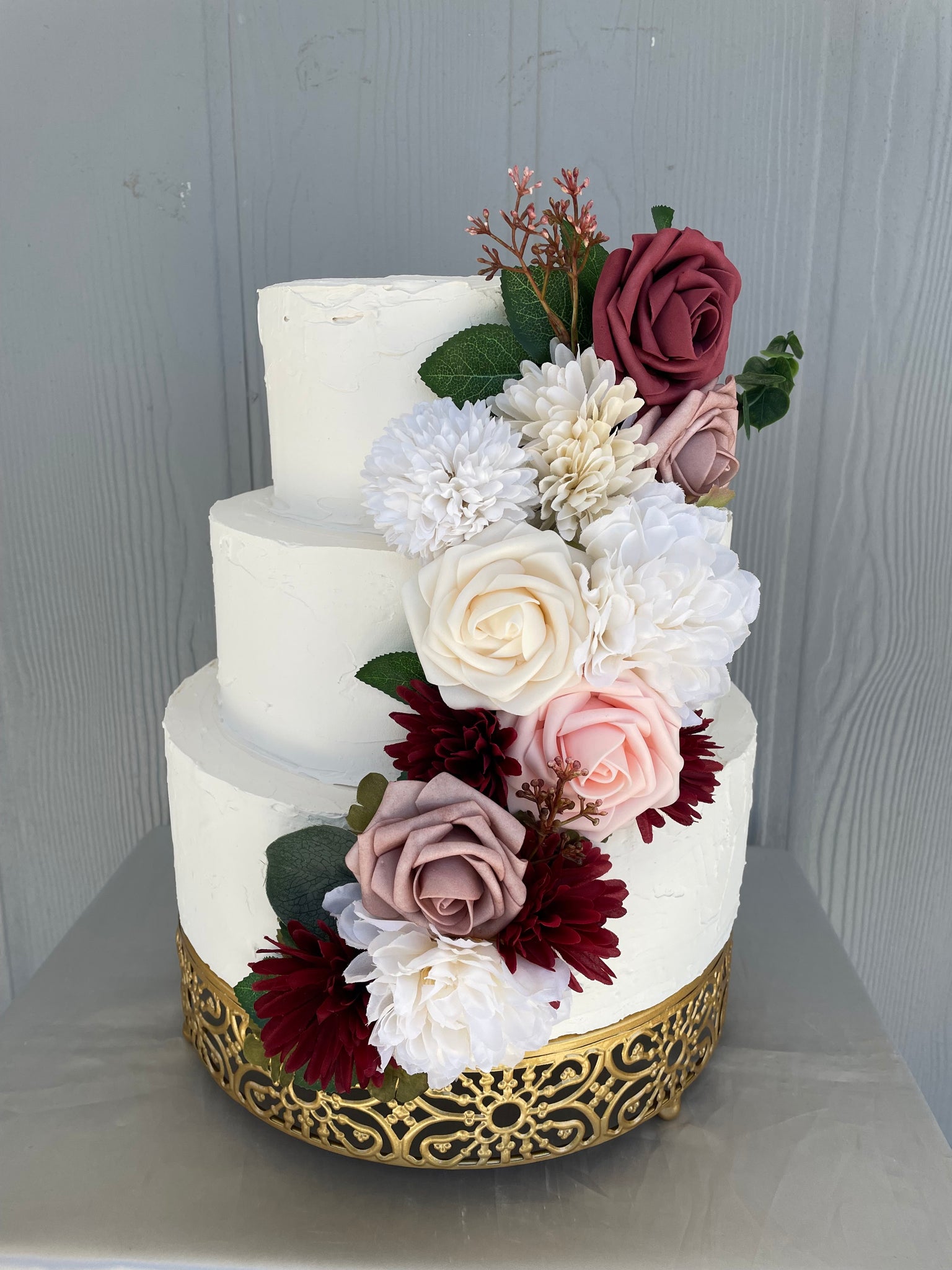 Elevate your wedding cake with our exquisite floral cake clusters, designed to add a touch of natural elegance to your special day. This stunning arrangement showcases carefully selected blooms from Prissy Bouquets, seamlessly complementing the cake’s design and color palette. Perfect for creating a cohesive and romantic look, our cake clusters are customized to match your wedding theme, ensuring every detail is picture-perfect.